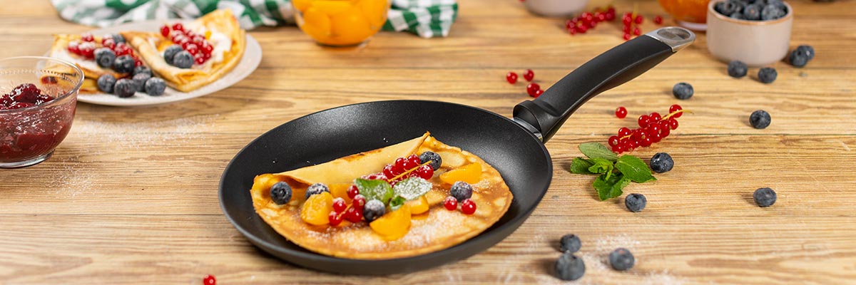 Unbeschichtete Bratpfannen ermöglichen ein scharfes Anbraten und fördern so die Entwicklung intensiver Röstaromen. Mit etwas Übung gelingen aber auch delikatere Speisen wie Crêpes perfekt.
